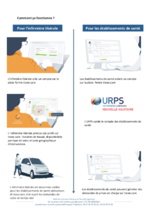 La plateforme qui adresse les soins qui relèvent de la prise en charge libérale vers les infirmières libérales. Cette solution qui facilité les sorties d’hospitalisation tout en respectant le libre choix du patient, évite les points de rupture dans le parcours de soins et participe au décloisonnement entre la ville et l’hôpital.